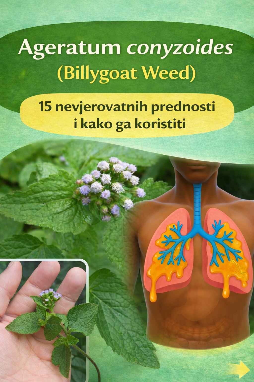 Ageratum conyzoides, ili Billygoat Weed, moćan je prirodni lijek s raznolikim zdravstvenim prednostima. Od zacjeljivanja rana i ublažavanja disajnih puteva do antifungalnih i protuupalnih svojstava, ova biljka je zaslužila svoje mjesto u tradicionalnoj medicini. Razumijevanjem njene upotrebe i pridržavanjem ispravnih metoda primjene, možete sigurno iskoristiti moć Billygoat Weed-a za poboljšanje zdravlja i dobrobiti.