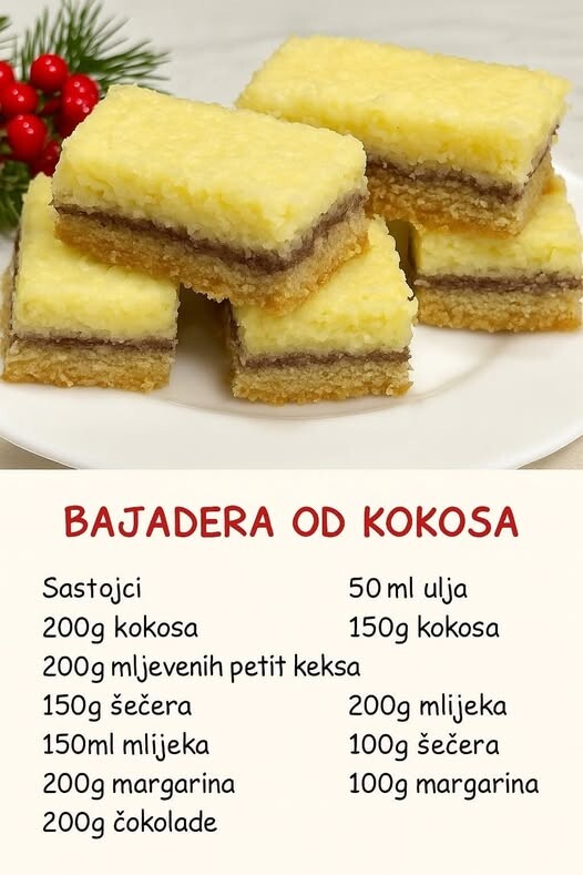 Bajadera od kokosa je slatka poslastica koja spaja kokos, kekse i čokoladu u savršenim slojevima. Ovaj jednostavan kolač ne zahteva pečenje, a bogatstvo okusa i sočnost čine ga nezaboravnom poslasticom.
