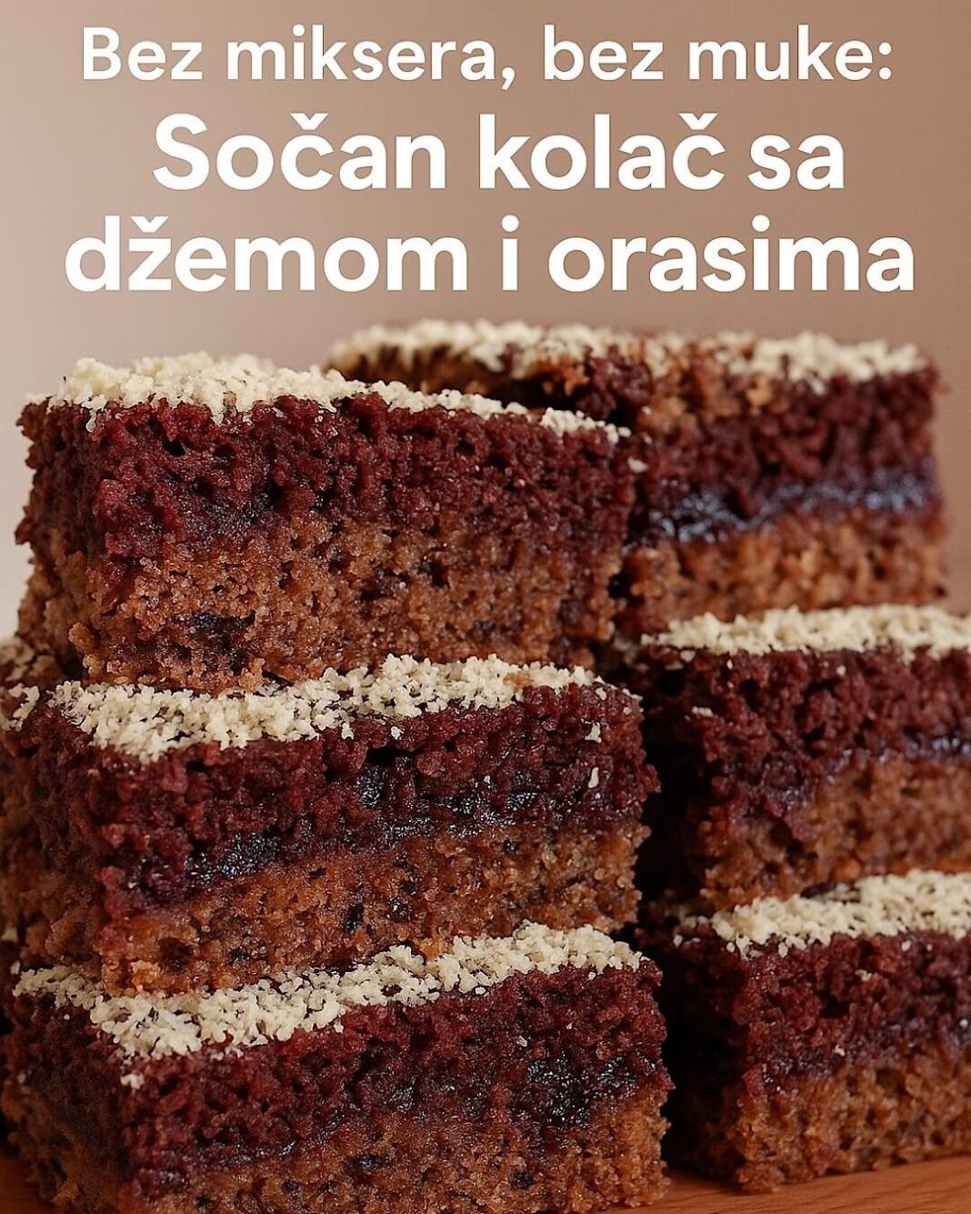 Bez miksera, bez muke: Sočan kolač sa džemom i orasima gotov za tren!