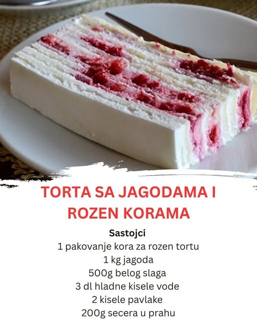 Voćna torta sa rozen korama je pravi izbor kada želite ukusan i osvežavajući desert. Ova torta je jednostavna za pripremu, ali je puna ukusa i daje pravi “wow” efekat. Spoj kiselkaste pavlake, slatkog šlaga i sočnih jagoda stvara savršenu harmoniju ukusa.