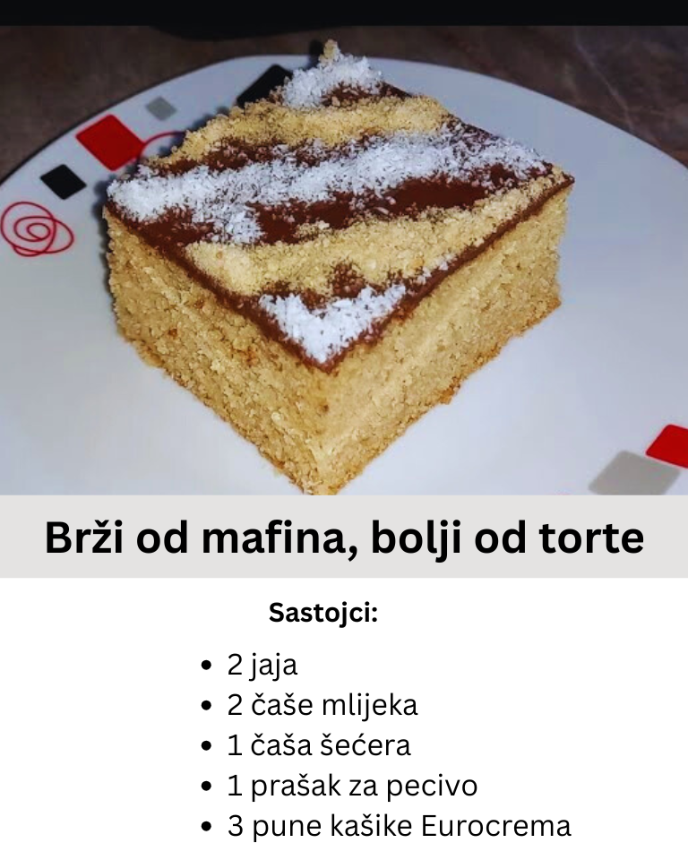 3. Izlijte u podmazan pleh i pecite na 180°C oko 25–30 minuta, dok ne porumeni.