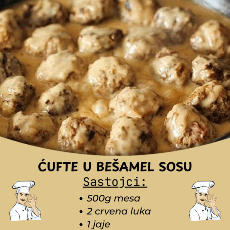 Ćufte u bešamel sosu poslužite uz pomftir i salatu po želji.