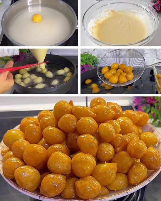 Testo prebacite u vrećicu za ukrašavanje kolača (ili običnu kesu kojoj ćete odrezati vrh). Istiskujte male kuglice u vruće ulje, koristeći nauljene makaze da ih odsecate. Pržite u dubokom ulju dok ne dobiju zlatnu boju, povremeno mešajući da ravnomerno porumene.