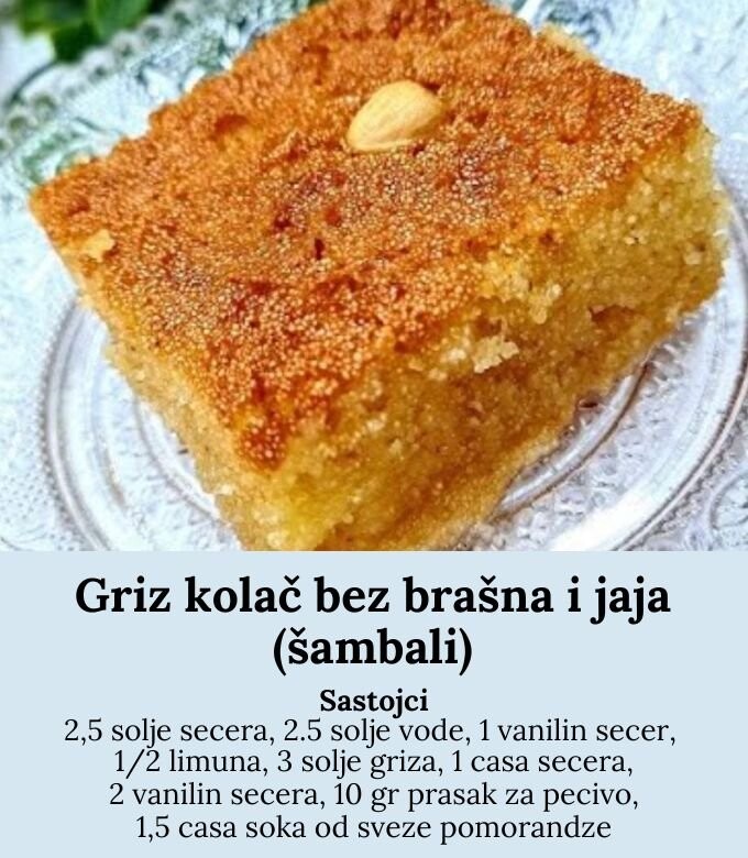 Ovaj tradicionalni desert orijentalnog porekla pravi se od samo nekoliko sastojaka, bez brašna i jaja, a rezultat je sočan, mirisan i sladak kolač koji se topi u ustima. Idealno rešenje kada želite brzu poslasticu koja mami mirisima citrusa i vanile.