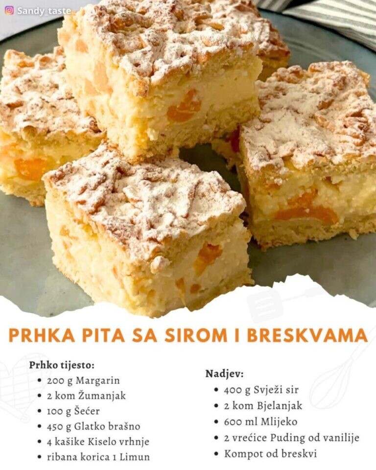 Ova pita je spoj hrskavog tijesta, lagane kreme od svježeg sira i slatkih, sočnih breskvi. Savršen izbor za ljeto, lagane deserte ili kada želite nešto brzo i osvježavajuće.