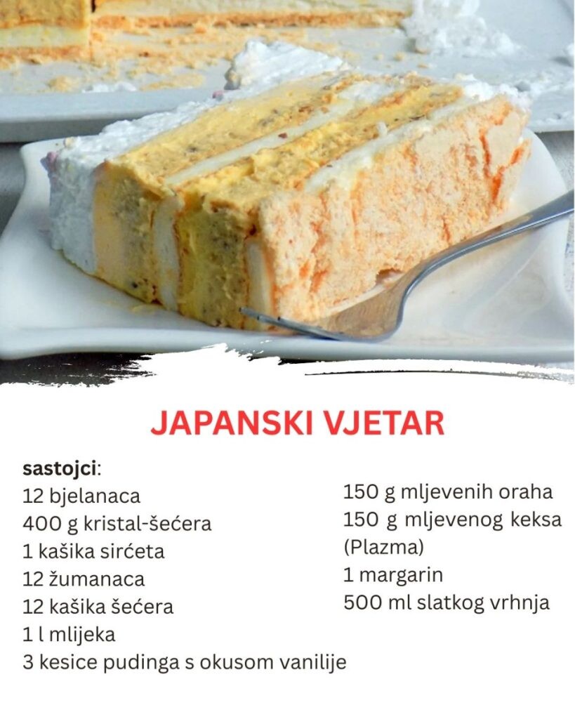 Japanski vetar nije obična torta – ona je spoj klasike, elegancije i domaće tradicije. Njen ukus će vas osvojiti na prvi zalogaj, a jednostavna priprema čini je odličnim izborom čak i za one sa manje iskustva u kuhinji.