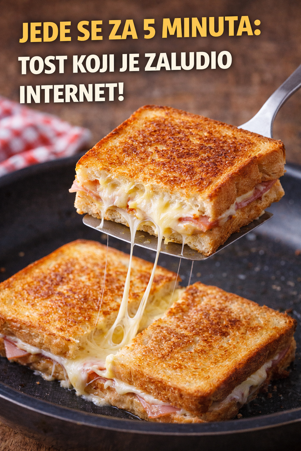 Ono što ovaj tost čini posebnim je kombinacija hrskavog hljeba i topljenog sira koji se razvlači pri svakom zalogaju.