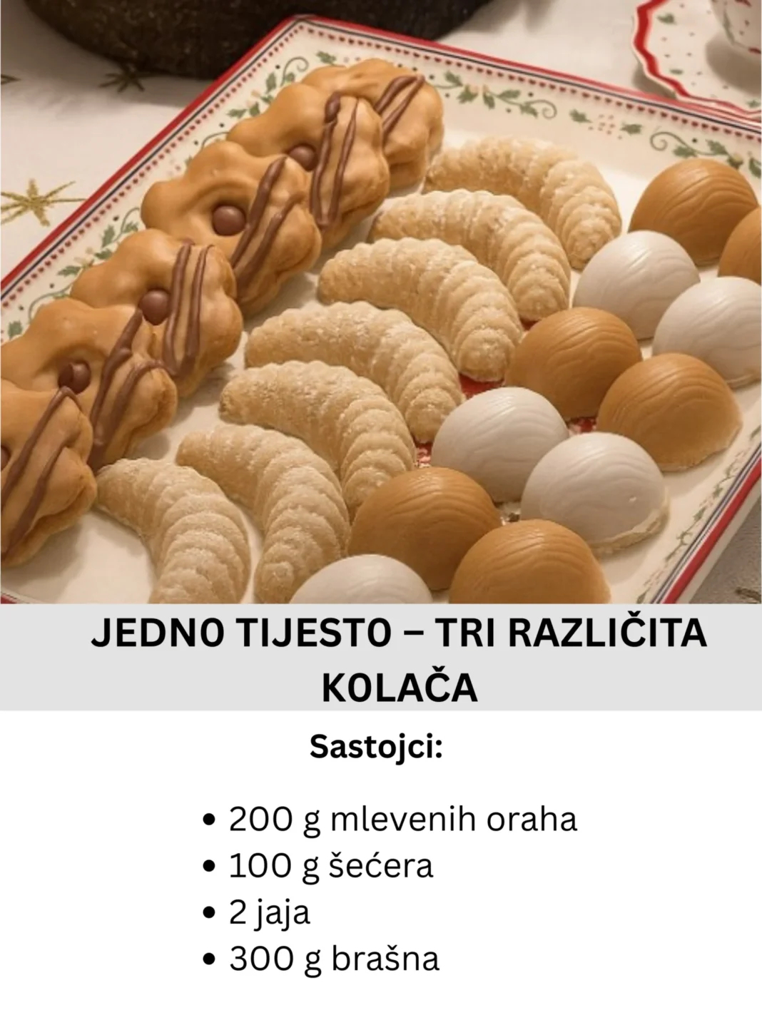 U svetu poslastica, često se traži recept koji je istovremeno praktičan, ukusan i prilagodljiv. Zamislite da imate samo jedno osnovno testo, a iz njega dobijete čak tri potpuno različita keksa – svaki sa svojim šarmom, ukusom i izgledom. Upravo to donosi ovaj genijalni recept: uz minimalan trud i vreme, dobijate tri vrste keksića koje će zaseniti i najzahtevnije goste. Bilo da ih pripremate za praznike, rođendane ili prosto da obradujete sebe uz šolju kafe – ovaj recept je pravi izbor.