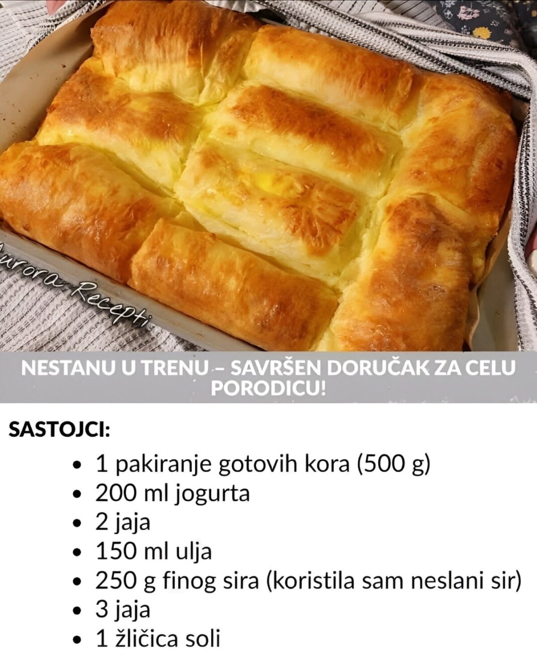 U nauljanu tepsiju ređajte red kora, pa red sira, red kora i sve tako dok vam ne ponestane materijala. Prelijte preostalom smesom.