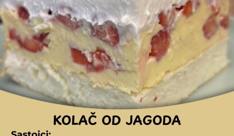 Na kremu složi svježe narezane jagode. Po želji ih premaži razmućenim želatinom da se sjaje i drže na mjestu.