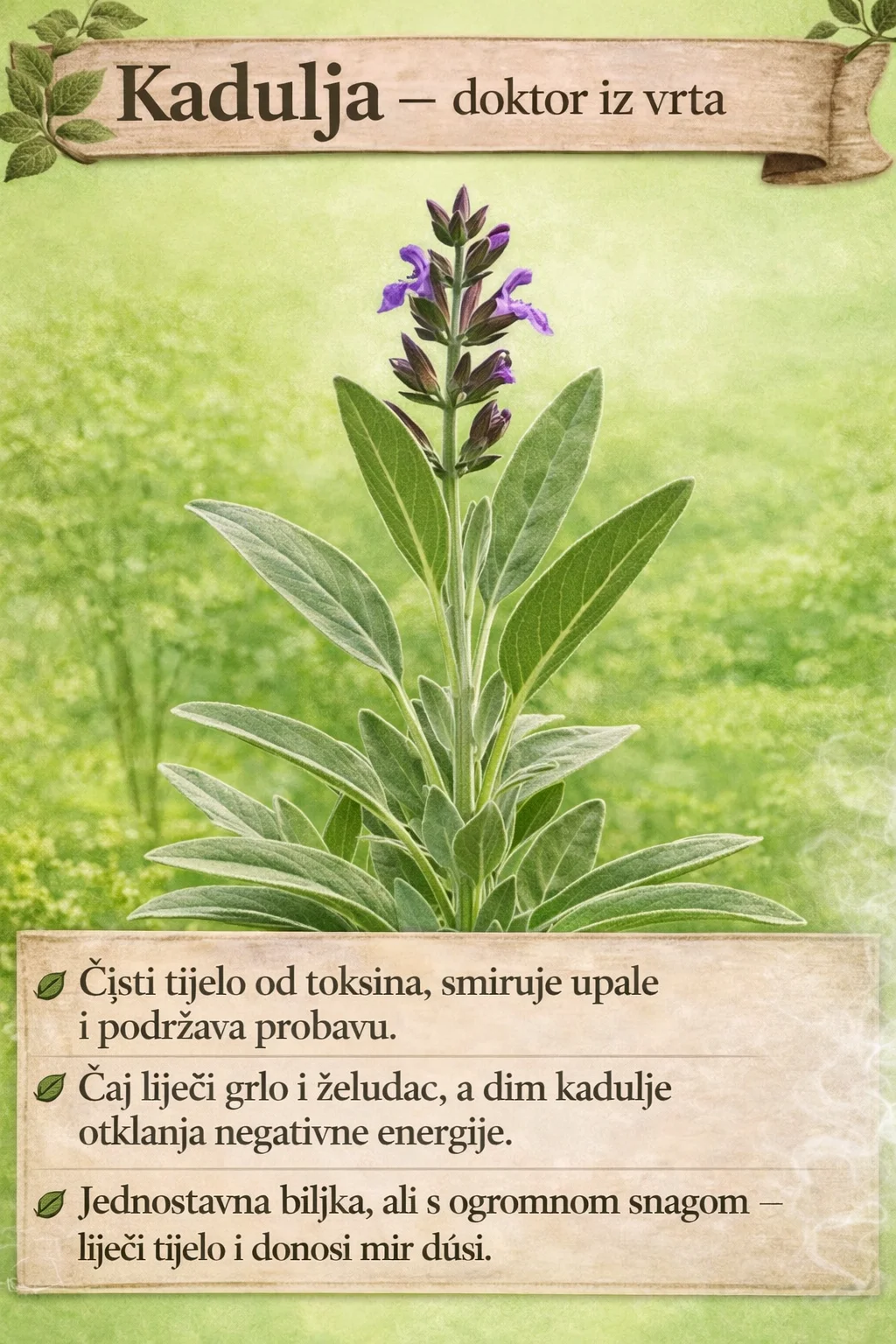 Kadulja dokazuje da snažno iscjeljenje može doći iz jednostavnih, prirodnih izvora. Bilo da se koristi kao čaj, začin ili biljni lijek, ova drevna biljka podržava probavu, imunitet, mentalnu jasnoću i emocionalnu ravnotežu. To je blag, ali učinkovit dodatak zdravom načinu života.