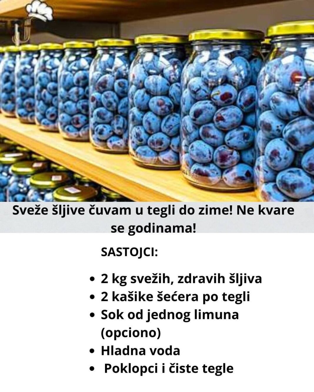 Čuvajte tegle na tamnom i hladnom mestu. Ovako pripremljene šljive ostaju čvrste, ukusne i bezbedne za konzumaciju tokom cele zime – pa čak i duže.