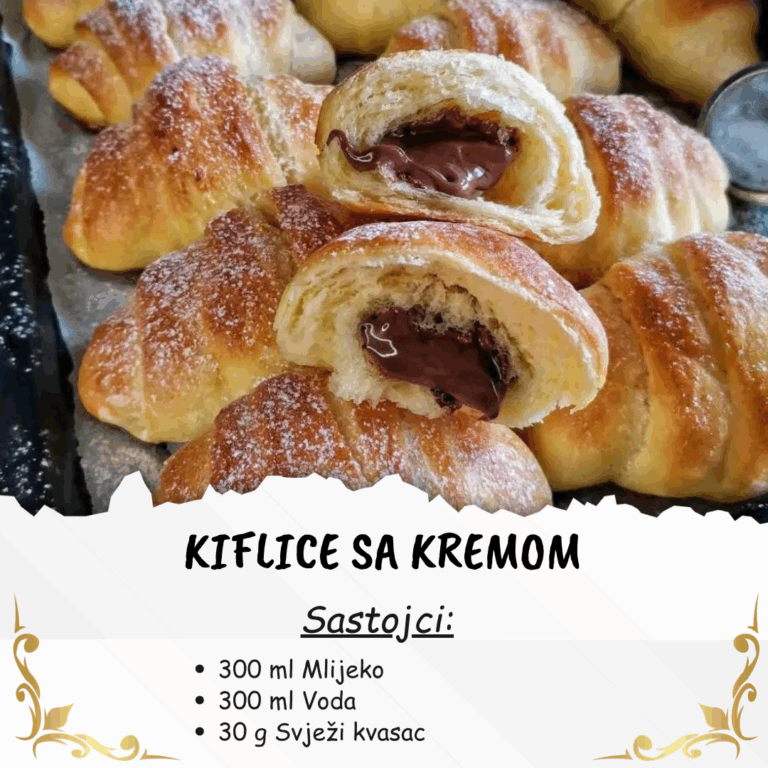 Kiflice sa kremom su savršen izbor za sve ljubitelje mekanih, sočnih peciva. Bilo da ih pripremate za doručak, užinu ili kao užitak za goste, ovaj recept garantuje odličan rezultat. Mekane, mirisne i pune kremastog užitka, ove kiflice će očarati svakog koji ih proba.