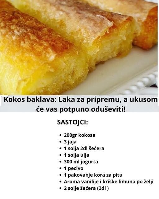 Kokos baklava: Laka za pripremu, a ukusom će vas potpuno oduševiti!