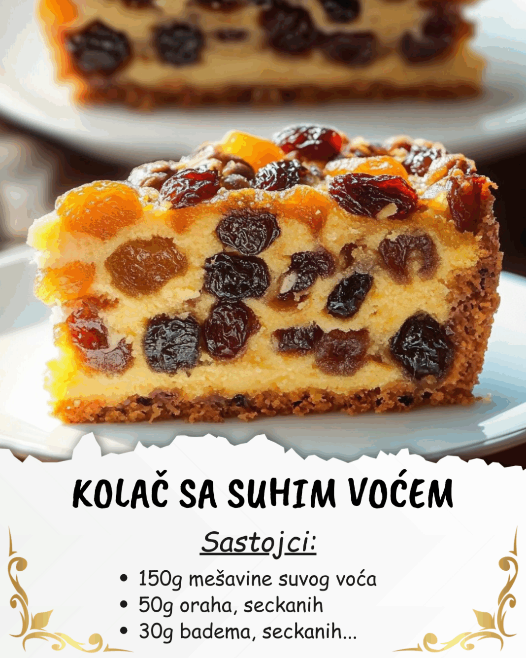 Ovaj kolač je jednostavan, ukusan i savršen za svaku priliku. Sa suvim voćem i orasima, ovaj kolač je savršeno sočan i bogat, a još brže možete uživati u njemu uz samo 10 minuta pripreme!