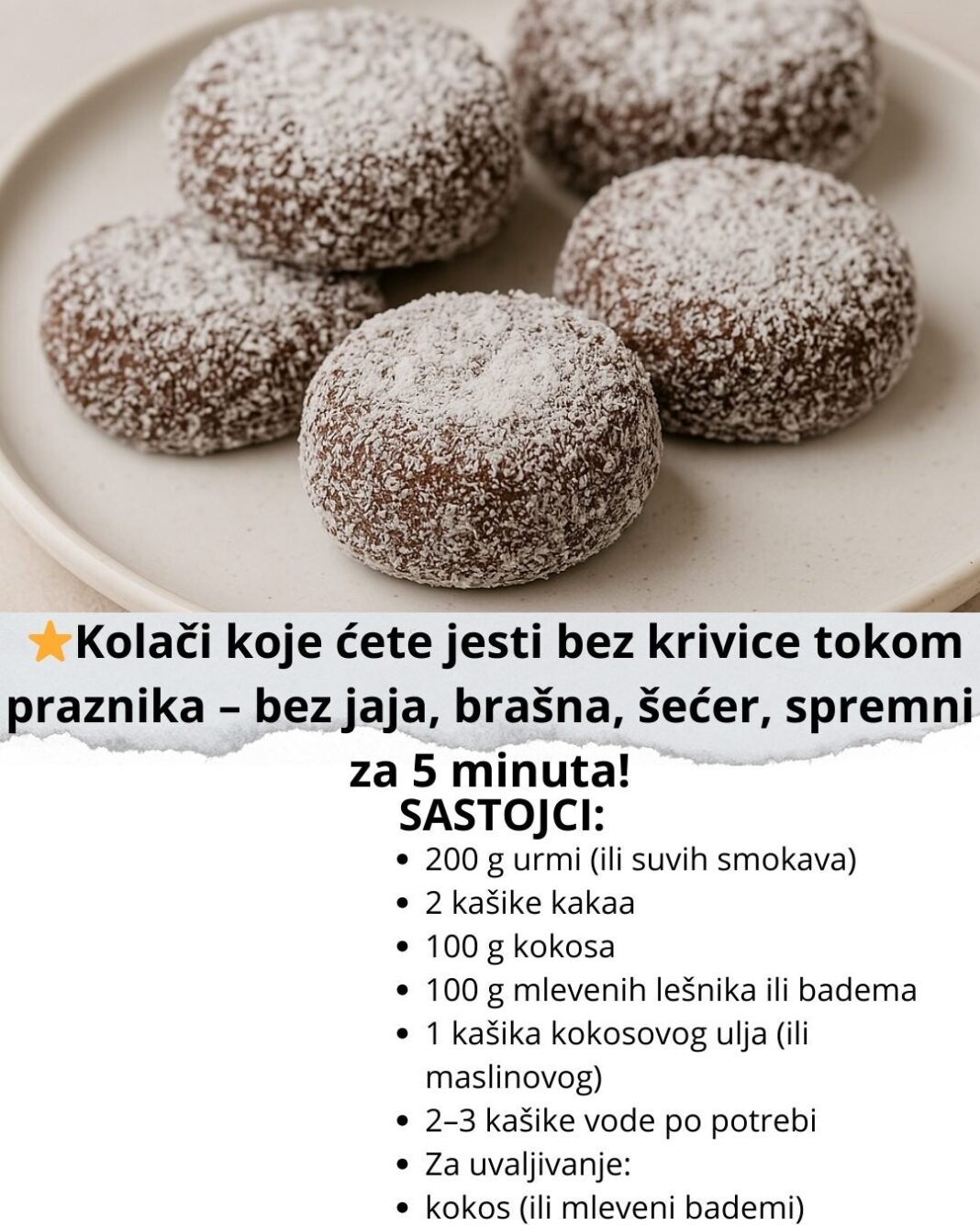 POSNI KOLAČI SA KOKOSOM – BEZ JAJA, BEZ BRAŠNA, BEZ ŠEĆERA