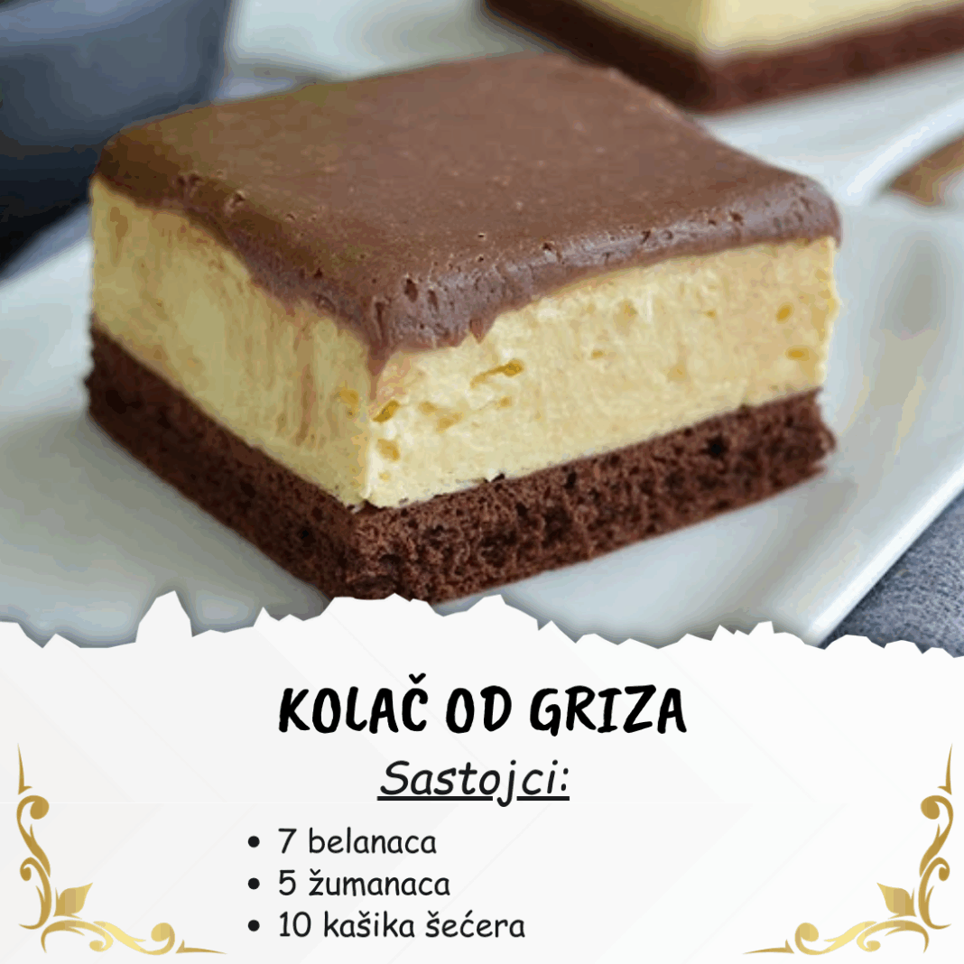 Ovaj kolač od griza sa bogatim ganache kremom je savršen desert koji će oduševiti vašu porodicu i goste. Sa jednostavnom pripremom i bogatim slojevima, ove kocke su idealne za sve prilike.