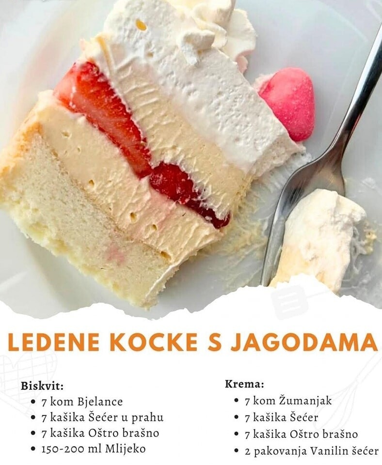Ovaj kolač je pravo osveženje, savršen za tople dane. Sa laganim biskvitom, kremastom filom i sočnim jagodama, ledene kocke s jagodama su idealan desert za sve prilike.