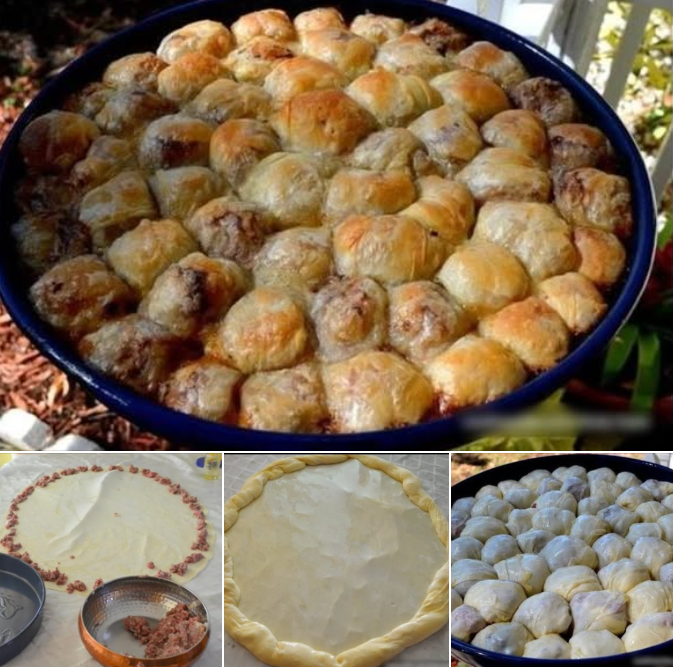 U tiganj sipajte malo ulja i kada se ugreje sipajte sitno seckan crni luk i pržite dok ne dobije zlatnu boju. Dodajte mleveno meso i dinstajte desetak minuta. Začinite po ukusu i ostavite da se ohladi.