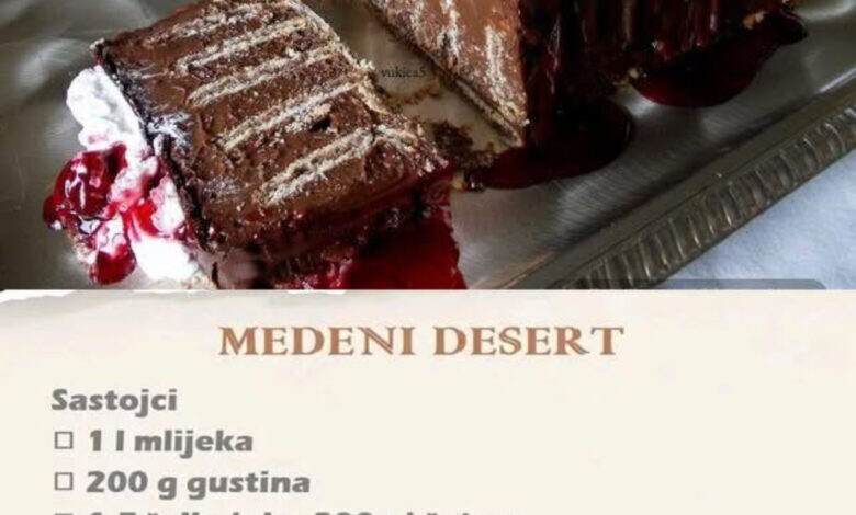 Ovaj kremasti desert spaja bogat ukus čokolade, miris meda i hrskavost keksa u savršen sklad. Priprema je jednostavna, a rezultat je prava poslastica koja se topi u ustima.