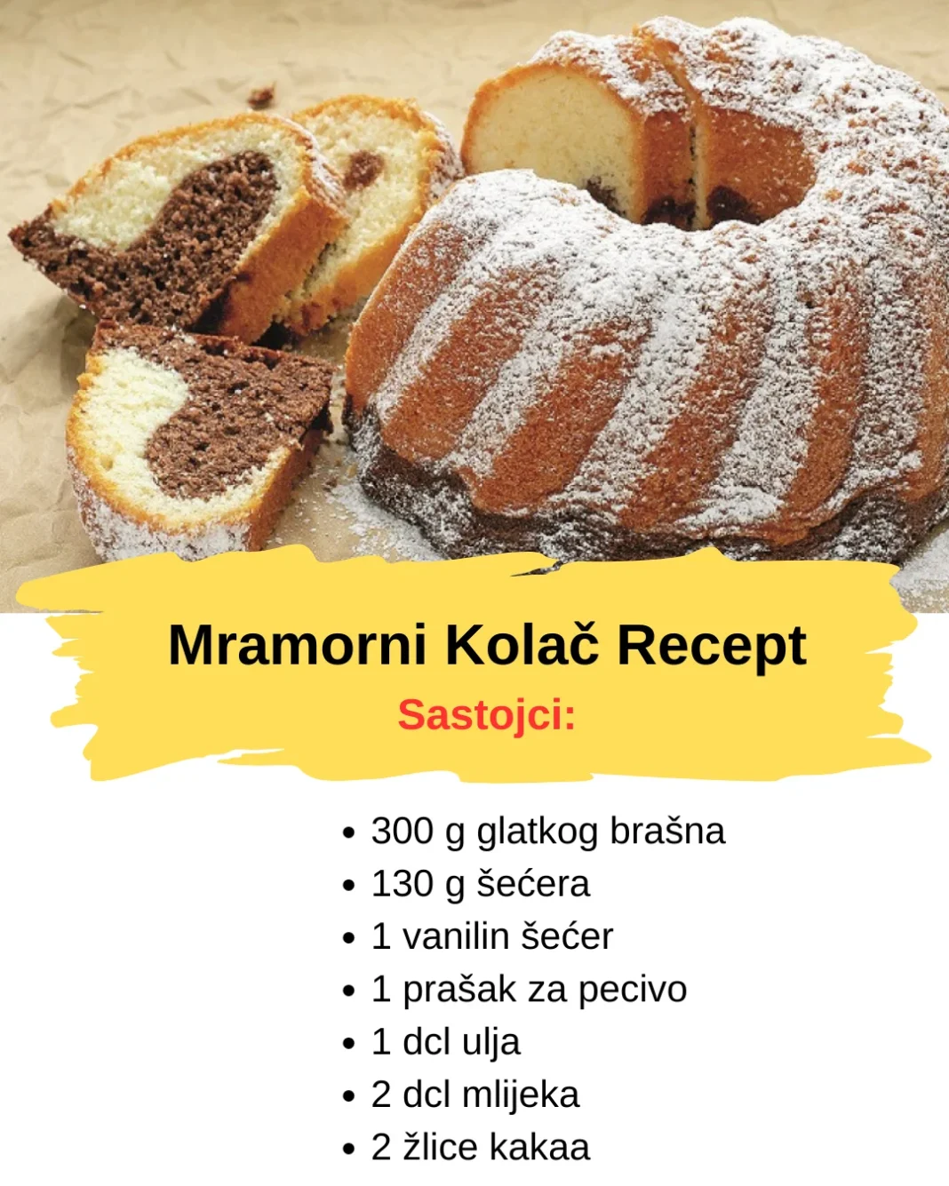 U nastavku donosimo provjereni recept i korake za savršen mramorni kolač koji uspijeva baš svaki put.