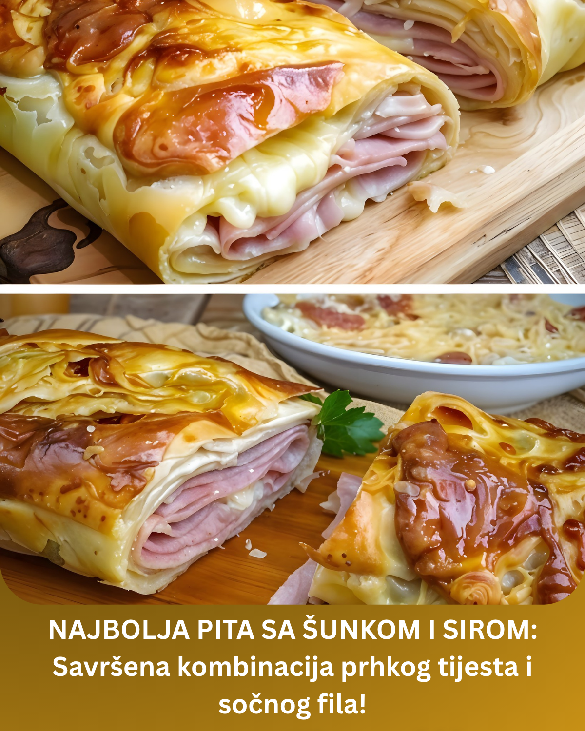 Ovaj recept za štrudlu od šunke i sira u lisnatom tijestu savršen je za brzi obrok, a idealan je i kada želite impresionirati goste ukusnim, a jednostavnim jelom. Spoj kremastog sira, sočne šunke i hrskavog tijesta donosi bogatstvo okusa u svakom zalogaju. Dodajte senf i začine po želji za još intenzivniji okus. Priprema je brza, a rezultat jednostavno oduševljava.