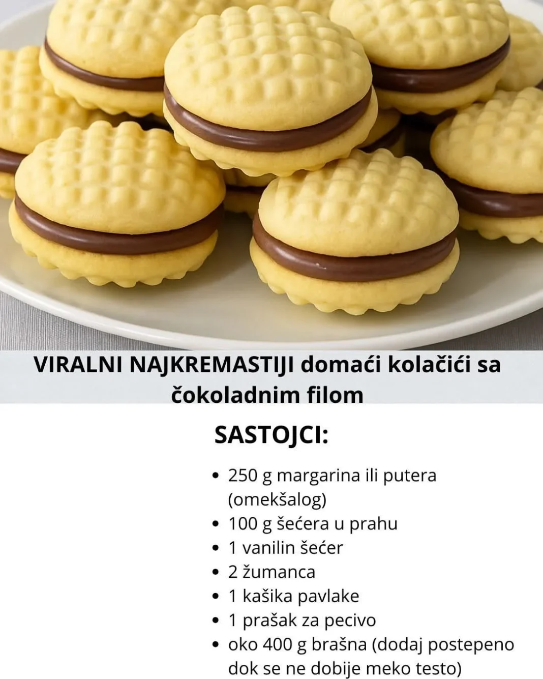 Ako tražite desert koji izgleda bogato, a pravi se lako i brzo, ovi domaći kolačići sa čokoladnim filom su pravi izbor. Mekani su, mirisni i puni kremaste čokoladne sredine koja se topi čim zagrizete. Idealni su kada želite nešto posebno bez komplikacija i dugog stajanja u kuhinji.