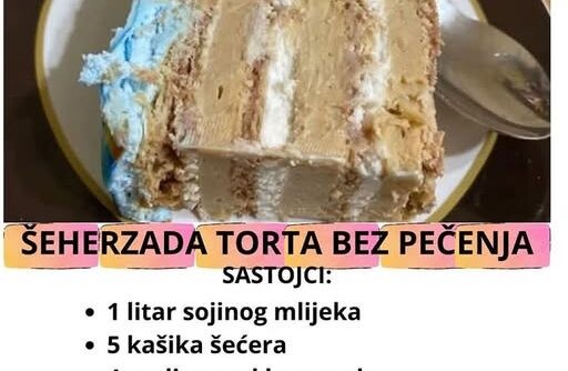 Izgleda ukusno! Evo recepta za “Šeherzada tortu bez pečenja” sa slike:
