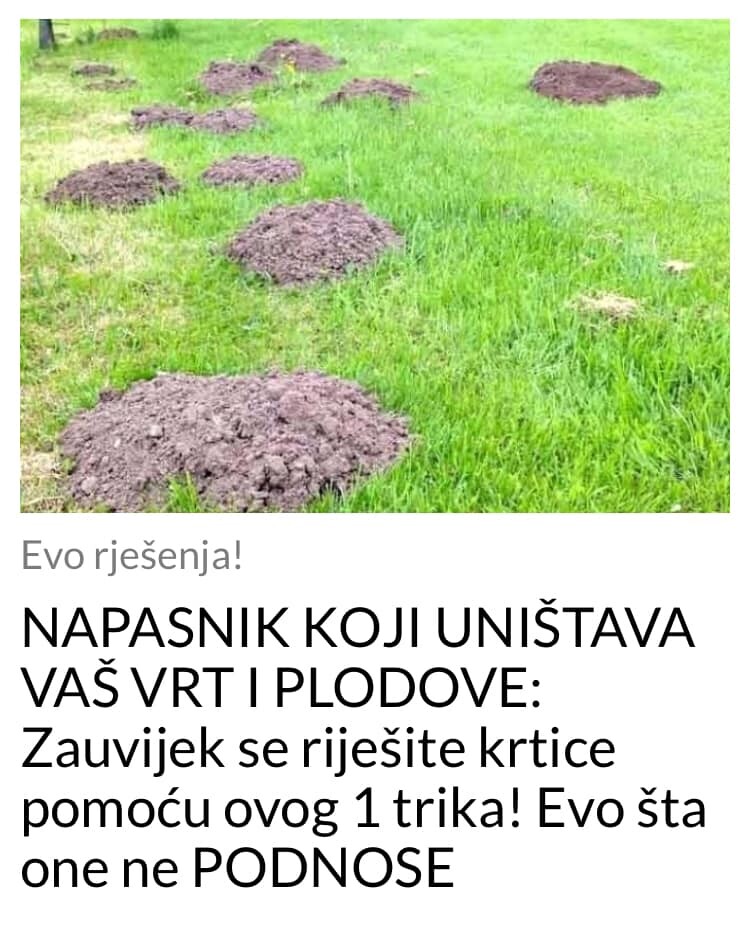 Iako se u poljoprivrednim apotekama mogu naći sredstva koja efikasno tjeraju krtice, savjetujemo vam da ipak pribjegnete prirodnim rješenjima.