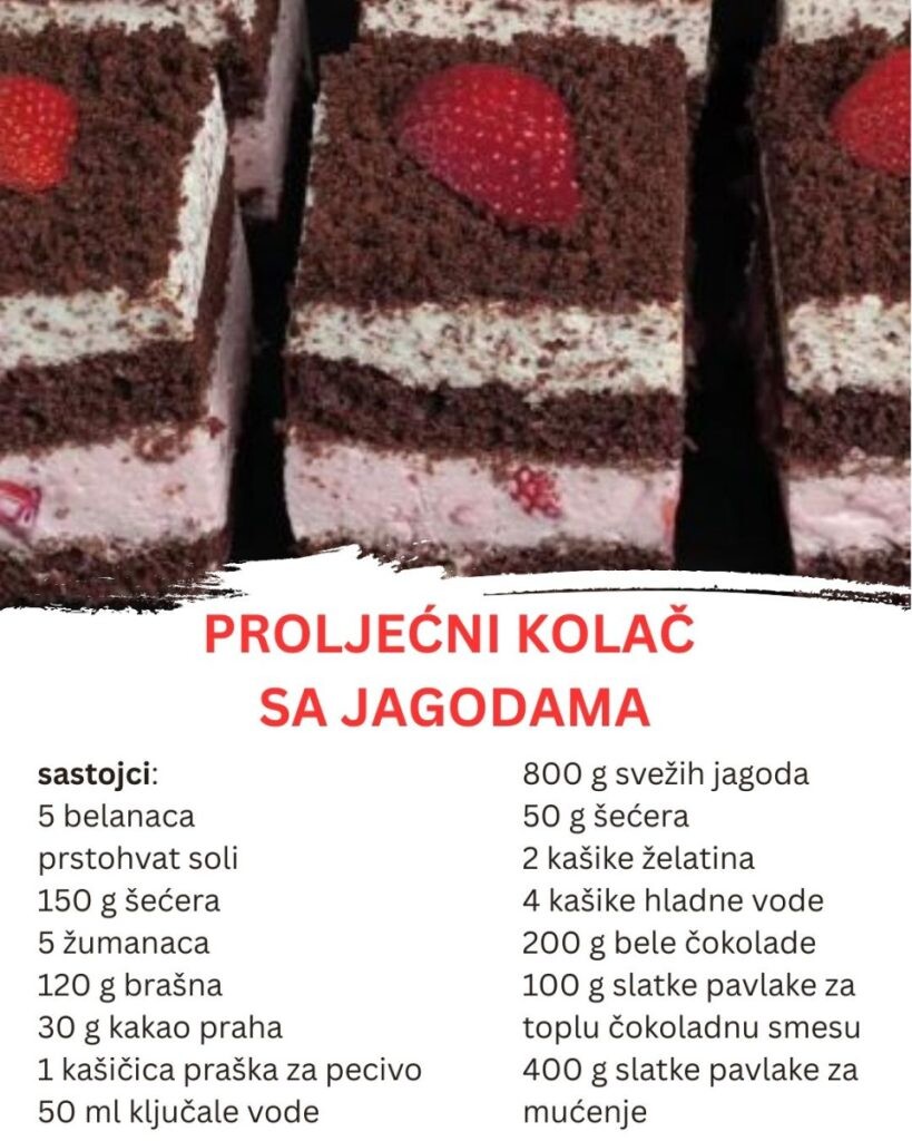 Proljetni dani donose želju za osvježavajućim poslasticama, a ova torta sa jagodama je savršen izbor. Brza je, jednostavna i savršeno kremasta, sa bogatim voćnim slojem i mekanim biskvitom. Idealna je za rođendane, okupljanja ili kao lagani desert za popodnevnu kafu.