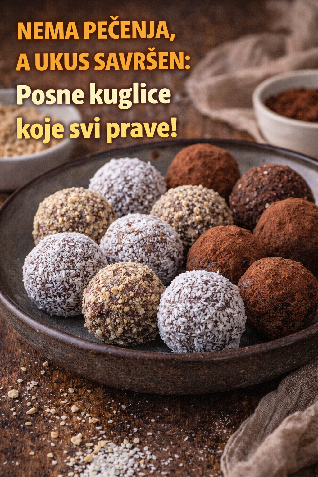 Ako tražiš brz, jednostavan i ukusan desert bez pečenja – ove posne kuglice su pravi izbor. Prave se za nekoliko minuta, a rezultat je slatkiš koji će svi rado jesti.