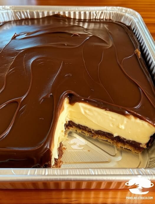 Prelijte čokoladnu glazuru preko krema i poravnajte površinu kašikom, praveći blage talase za dekoraciju.