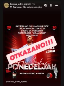 Na zvaničnoj Instagram stranici pomenute kafane objavljen je story na kojem preko najave koncerta sada piše samo “OTKAZANO”.
