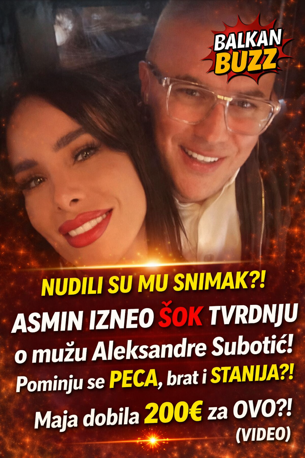 – Aleksandra sigurno ne može da zna s kim je njen muž tačno i šta su radili. Kad je objavljeno s kim Stanija letuje, meni je Stanija rekla da Sandra njoj to pakuje aferu. Kad su mi nudili da kupim snimak Pece, Stanije i njegovog brata, meni je Stanija rekla da je to isto pakovanje. Znam samo da su bili kod nekog Turčina na večeri – kazao je Asmin.
