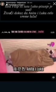 Na jednom snimku stoji datum 11.12. uz tvrdnje da je tada Anita bila u bliskom odnosu sa Filipom Đukićem. Već nekoliko dana kasnije, tačnije 18.12., zabeležen je njen boravak u izolaciji sa Lukom Vujovićem.
