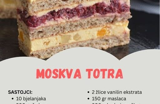 Za ljubitelje bogatih i kremastih deserata, ova torta predstavlja pravi raj za nepce. S njezinim savršenim slojevima koji kombinuju bjelanjke, orahe ili bademe, i kremasti fil od žumanjaka i maslaca, ovaj desert je prava harmonija okusa i tekstura. Uz dodatak sočnog voća poput ananas, breskvi i višnja, sve je zaokruženo šlagom i prženim bademima, što je čini ne samo ukusnom već i vizualno privlačnom.