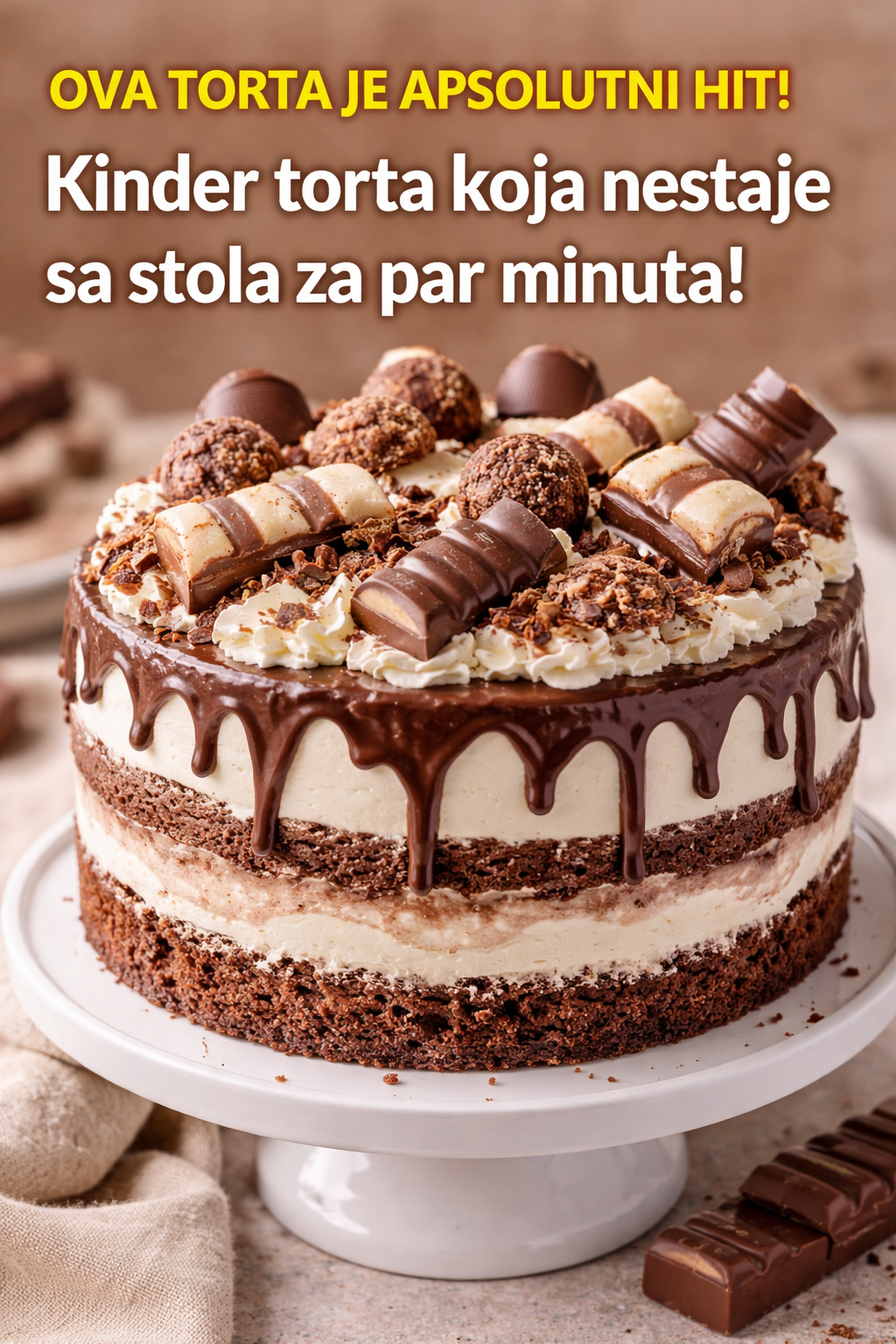 Ako postoji torta koja uvijek izazove oduševljenje na stolu – to je upravo ova. Kinder torta je postala nezaobilazna za praznike jer spaja bogat čokoladni ukus i laganu kremastu teksturu.