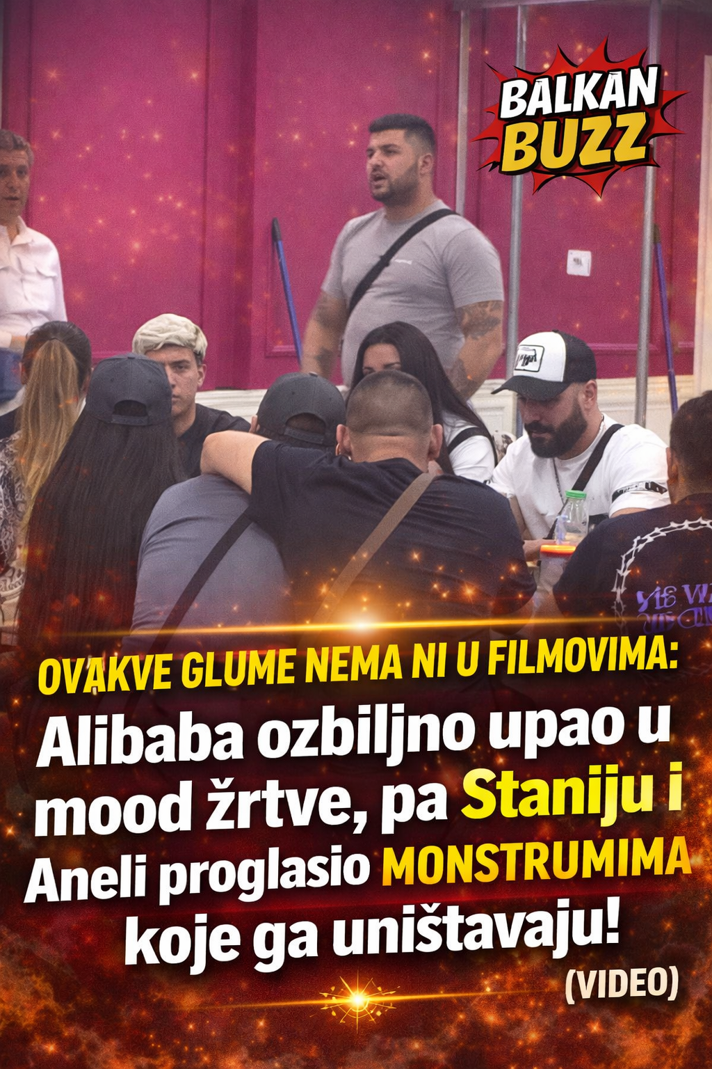 – Mene je strah i ja se plašim da mi Aneli ne otvori glavu jer svako jutro hoda oko našeg kreveta, uhodi nas i to svi znaju. Pre pola sata je htela na mene da nasrne, a ja samo želim da narod vidi da sam ja žrtva ove dve monstrumke. Ja nemam pravo da volim drugu devojku i da budem srećan, samo me pustite na miru i ne mešajte mi se u moju srećnu vezu – rekao je Alibaba.