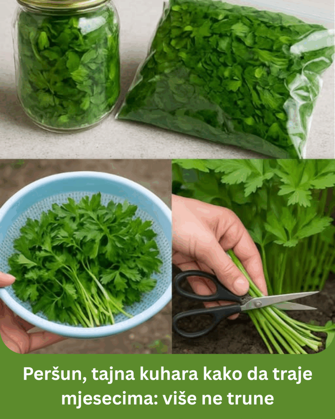 Peršun je jedno od najpopularnijih začinskih biljaka u svetu, poznat po svom osvežavajućem mirisu i bogatom ukusu. Bilo da se koristi u salatama, supama, umacima, ili kao ukras, peršun se često smatra neizbežnim sastojkom u mnogim kuhinjama. Međutim, često se dešava da svjež peršun ubrzo uvene, gubi boju i miris. Uz pravu tehniku konzerviranja, možete produžiti njegovu svježinu i očuvati ga za mesecima, a pritom zadržati njegov bogat ukus i hranljive vrednosti.