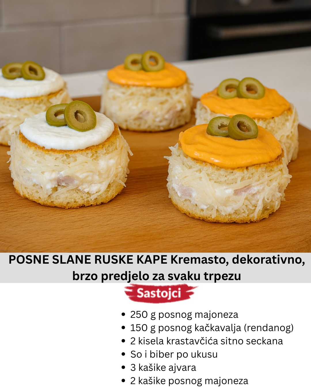 Sa strane nežno uvaljati u rendani kačkavalj (da se napravi “dlakava” ivica kao na originalnim slatkim ruskama kapama).