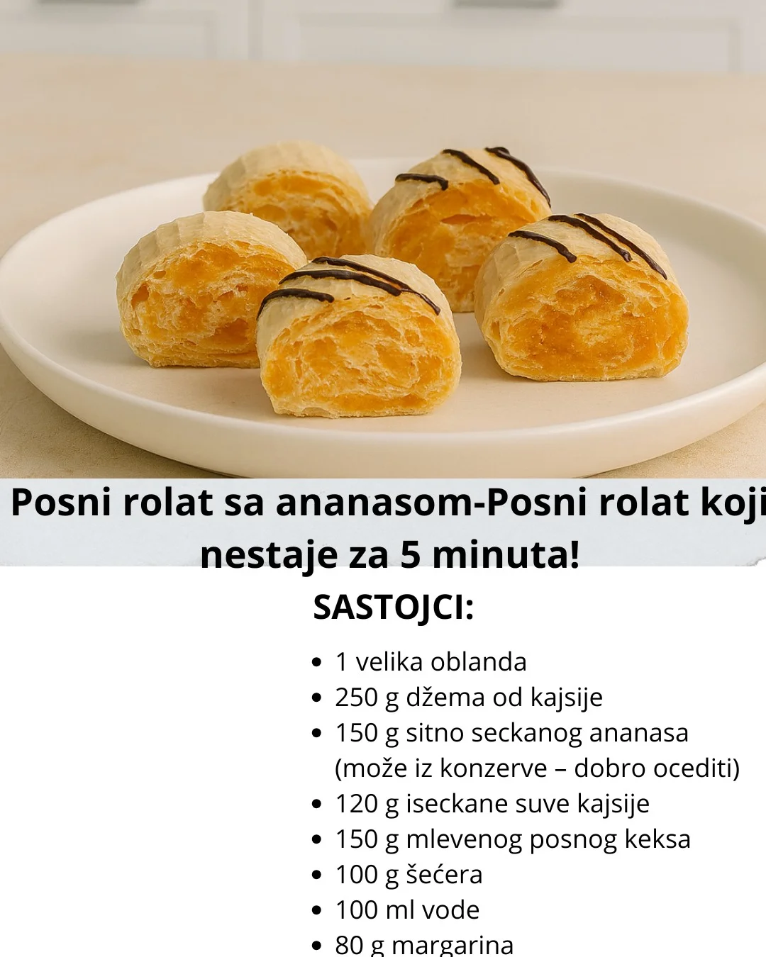 Rolovana oblanda sa džemom od kajsije, ananasom i suvim kajsijama – sočna kao kolač sa slike!