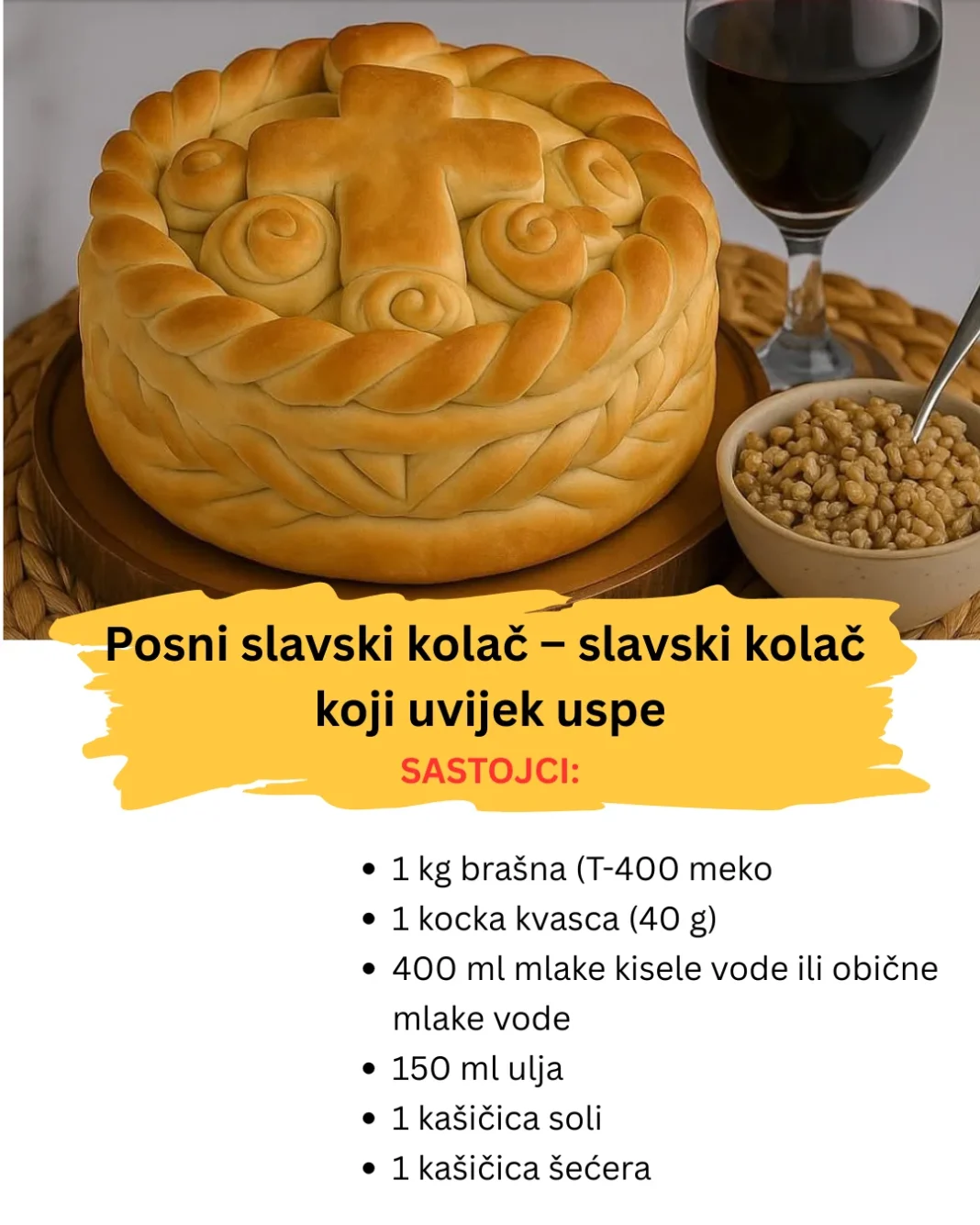 Seče se na tanke šnite, a ukus je bogat, pun i ukoso poslastičarski. Jednostavan, siguran i uvek uspešan – baš kako treba da izgleda slavski kolač.