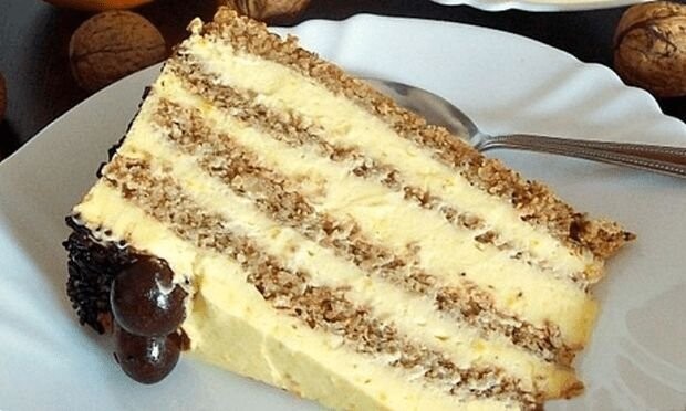 Fil podijeliti na 3 ili 4 jednaka dijela (u zavisnosti da li radite sa 3 ili 4 kore) i filovati kore. Na kraju ukrasiti kolač sa sjeckanim orasima ili griljažom i dobro rashladiti. Rezati na tanje šnite.