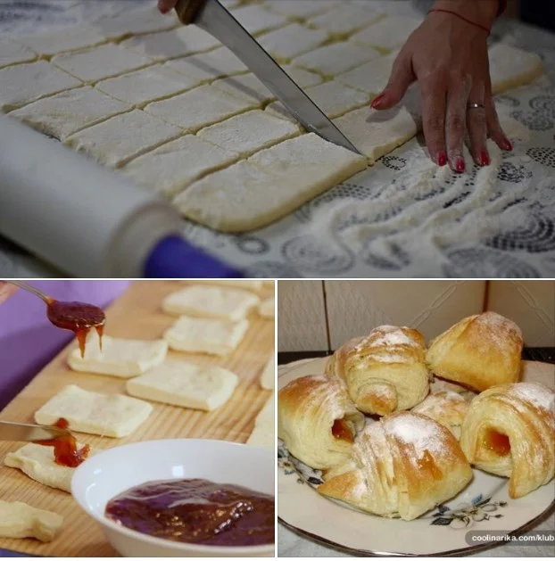 Nakon trećeg puta, razvaljajte testo, secite na trougliće, stavite malo marmelade po želji i uvijajte u kiflice.