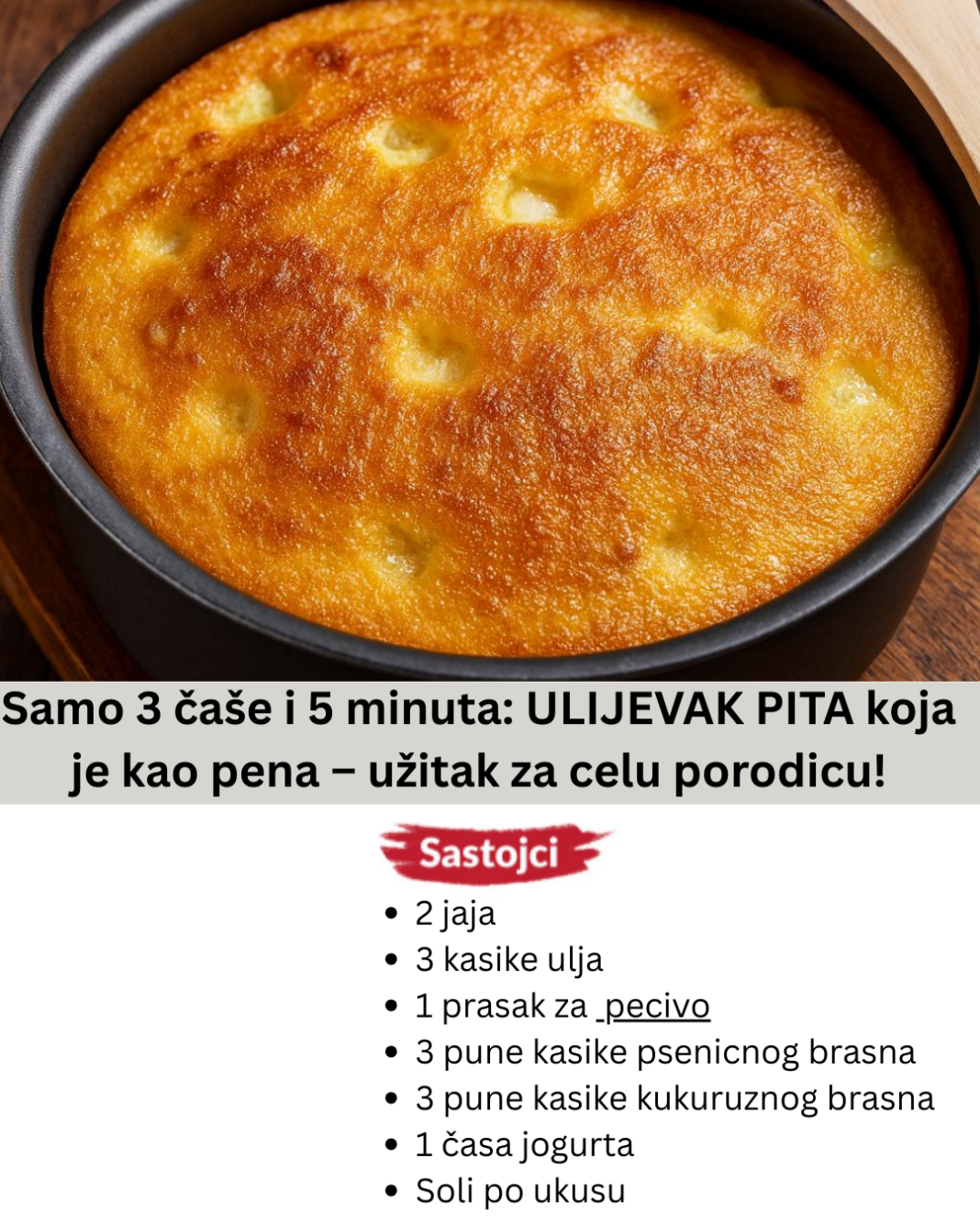 Оvo se pravi brzinom munje! Sjajna pita koja svima uspije.