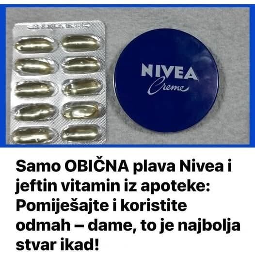 Maska za lice s vitaminom E: Preporučuje se miješanje NIVEA kreme s vitaminom E kako bi se napravila hranjiva maska za lice. Ova kombinacija hidratizira kožu, smanjuje bore i čini je podatnijom. Maska se nanosi na čistu kožu, uključujući područje oko očiju, te se nježno utrljava dok se potpuno ne upije.
