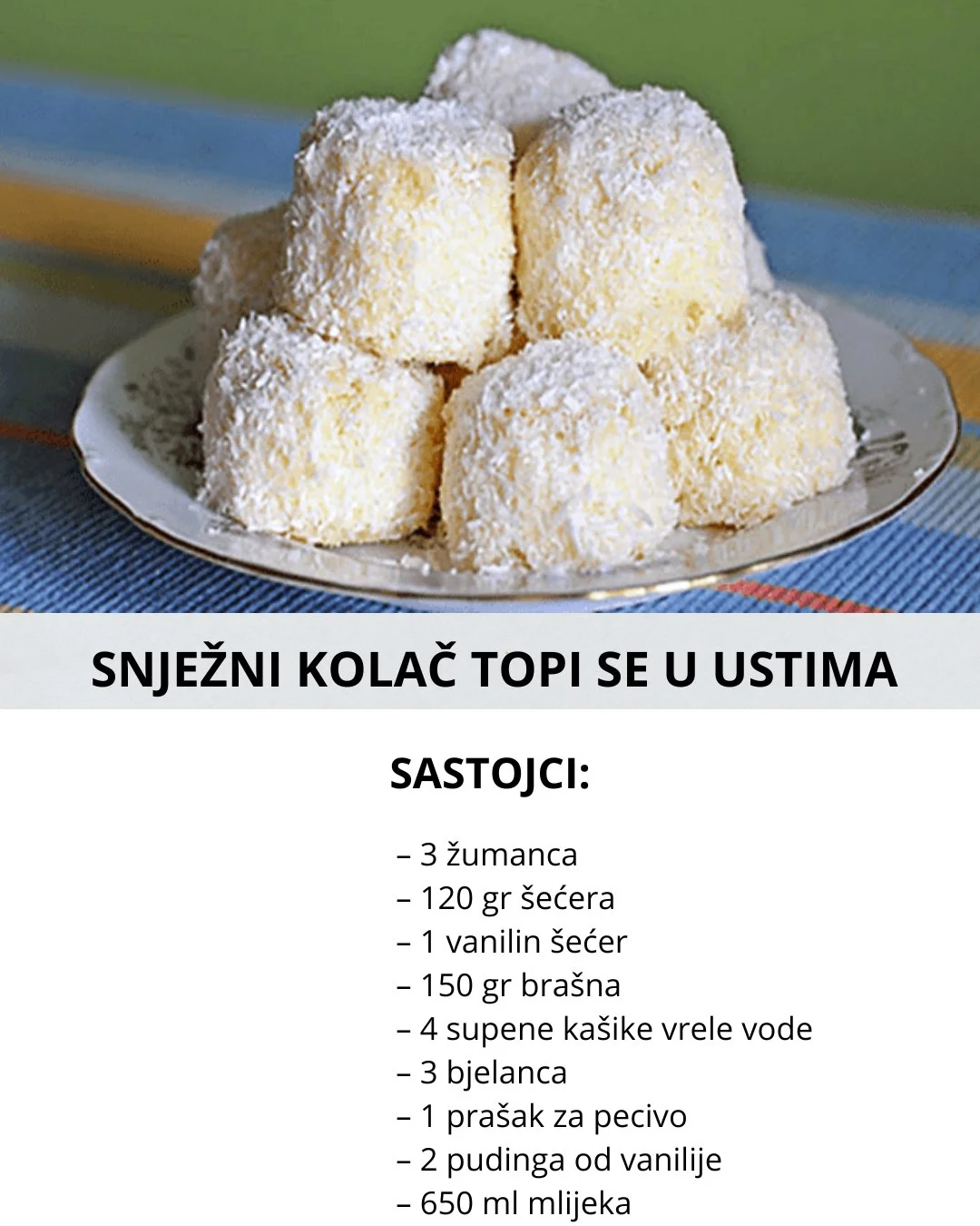 Po sredini, naokolo i sa gornje strane, pa uvaljati u kokosovo brašno. Poslagati na tanjir i započeti sa divljenjem i grickanjem.