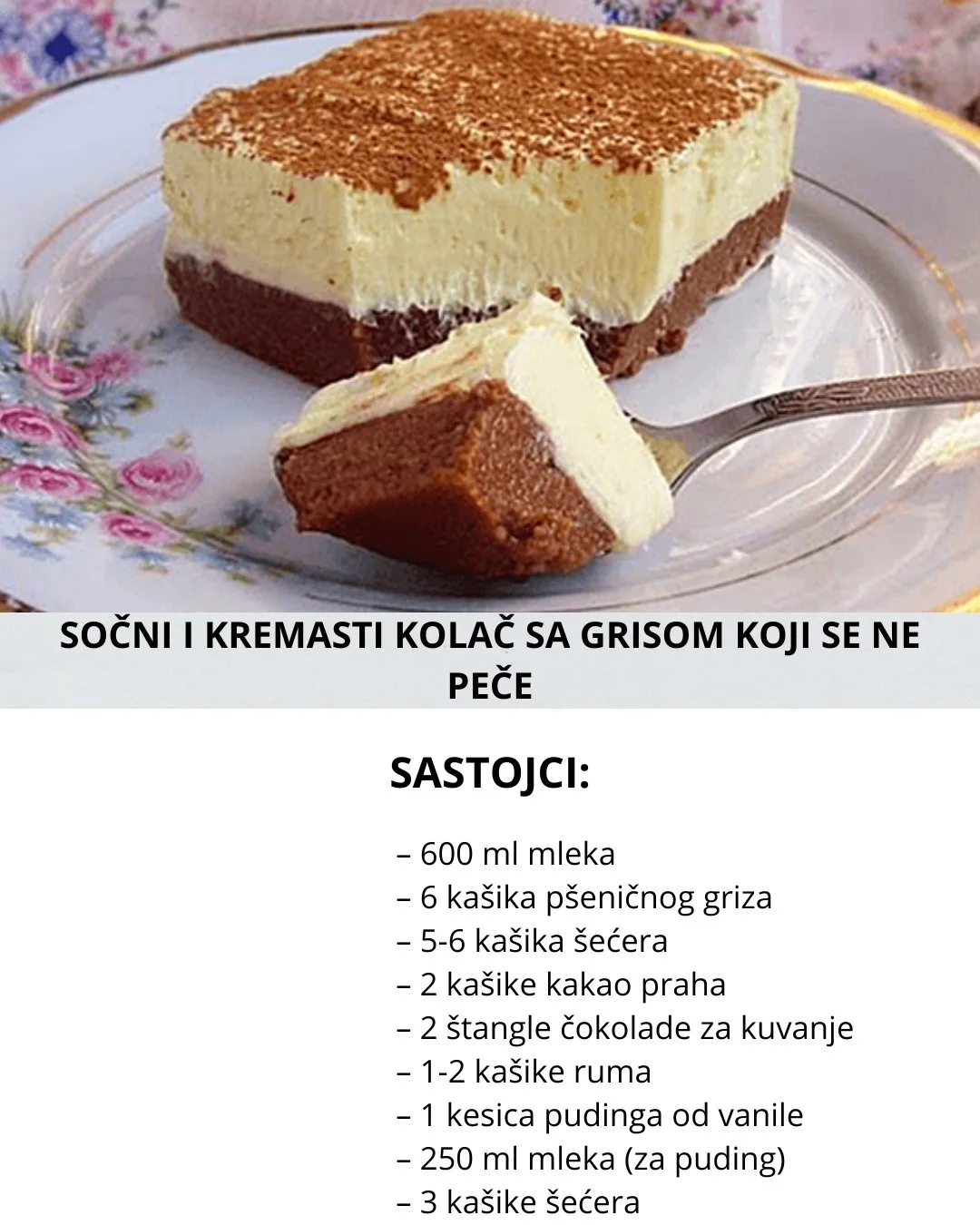Dobijeni krem rasporediti preko ohlađene podloge od griza i poravnati.
