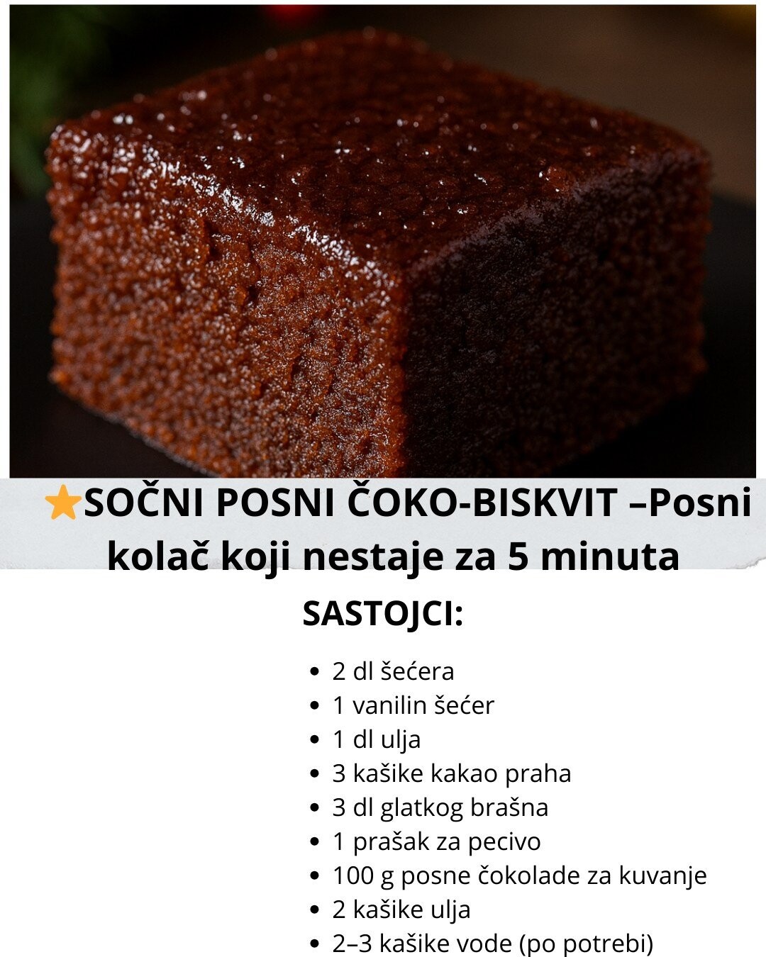 SOČNI POSNI ČOKO-BISKVIT – RECEPT
