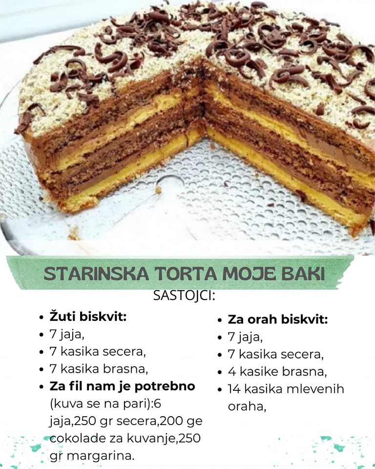 Starinska torta moje bake sa čokoladom i orah biskvitom zaista je fantastična poslastica. Ovaj recept čuvam već dugo vremena i odlučila sam da ga podelim s vama. Nadam se da će vam se dopasti koliko je i meni. U pitanju je torta sa kojom apsolutno nema greške.